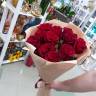 Букет из ярко красных роз, всегда отлично сочетается с крафтовой упаковкой. Прекрасно подойдет абсолютно для любого случая и докажет, что в вашем подарке отсутствует банальность и есть тонкое чувство вкуса